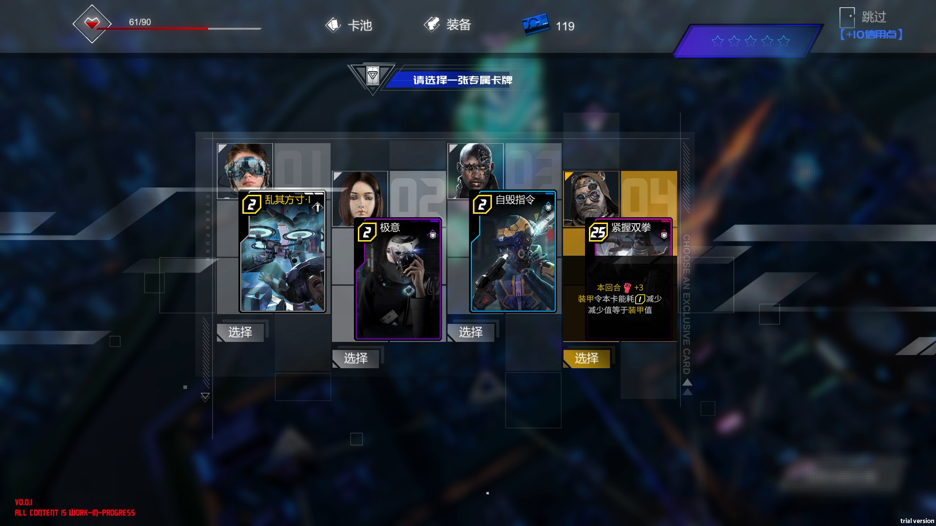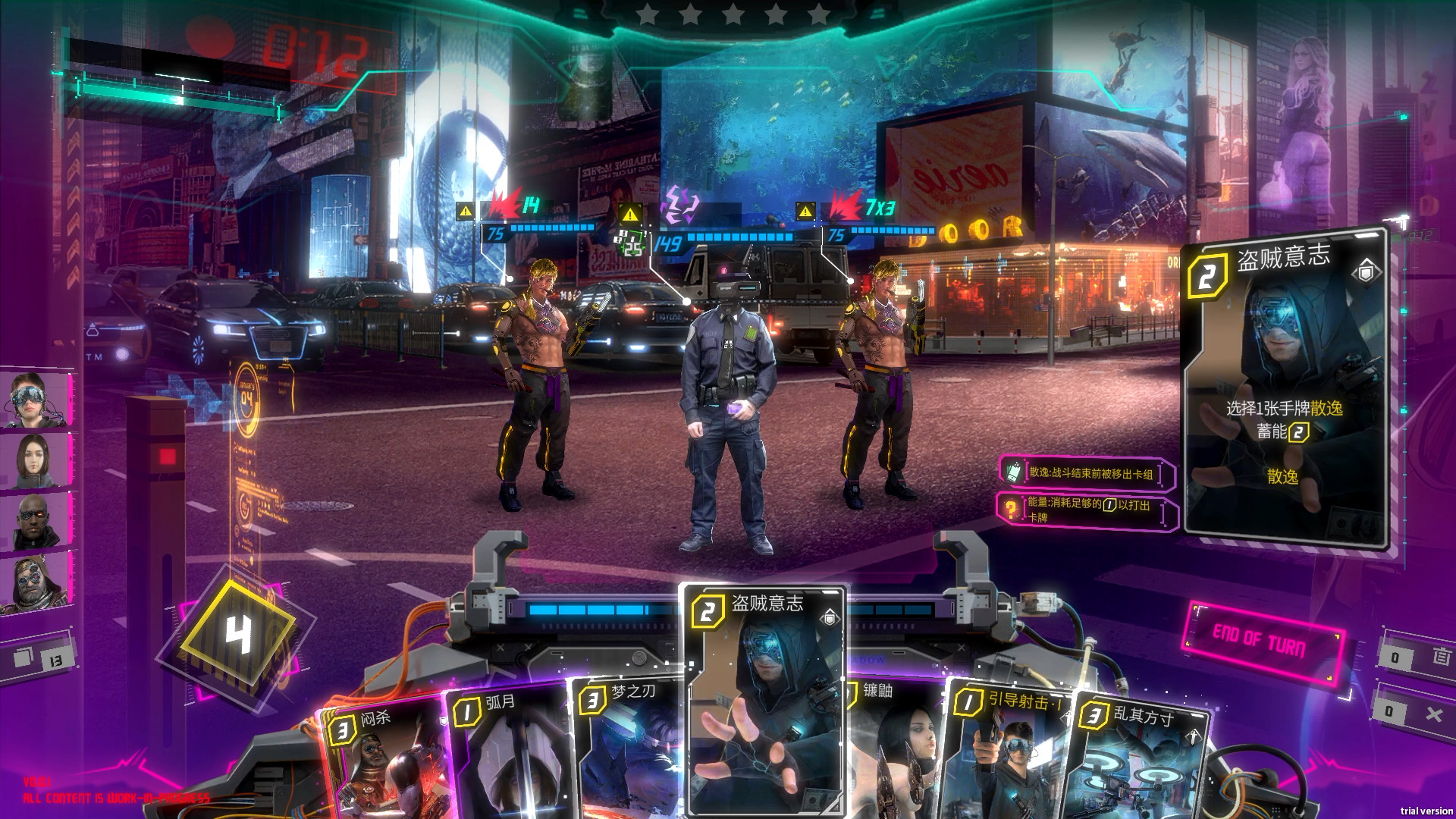 不断前进并完成天际传媒的核心人工智能*Argus*交给你的行动任务,在行动的过程中获得全新卡牌来扩充你的牌库。与线人、盟友的互动都有可能为你带来强力的卡牌,而来自黑帮的袭击或是意外的事件,甚至会给你带来肉体的创伤以及精神上的痛苦。在一次次的行动中不断构筑最适合你的牌组,并用这套牌组来完成最终的挑战,从末日危机中拯救星城。