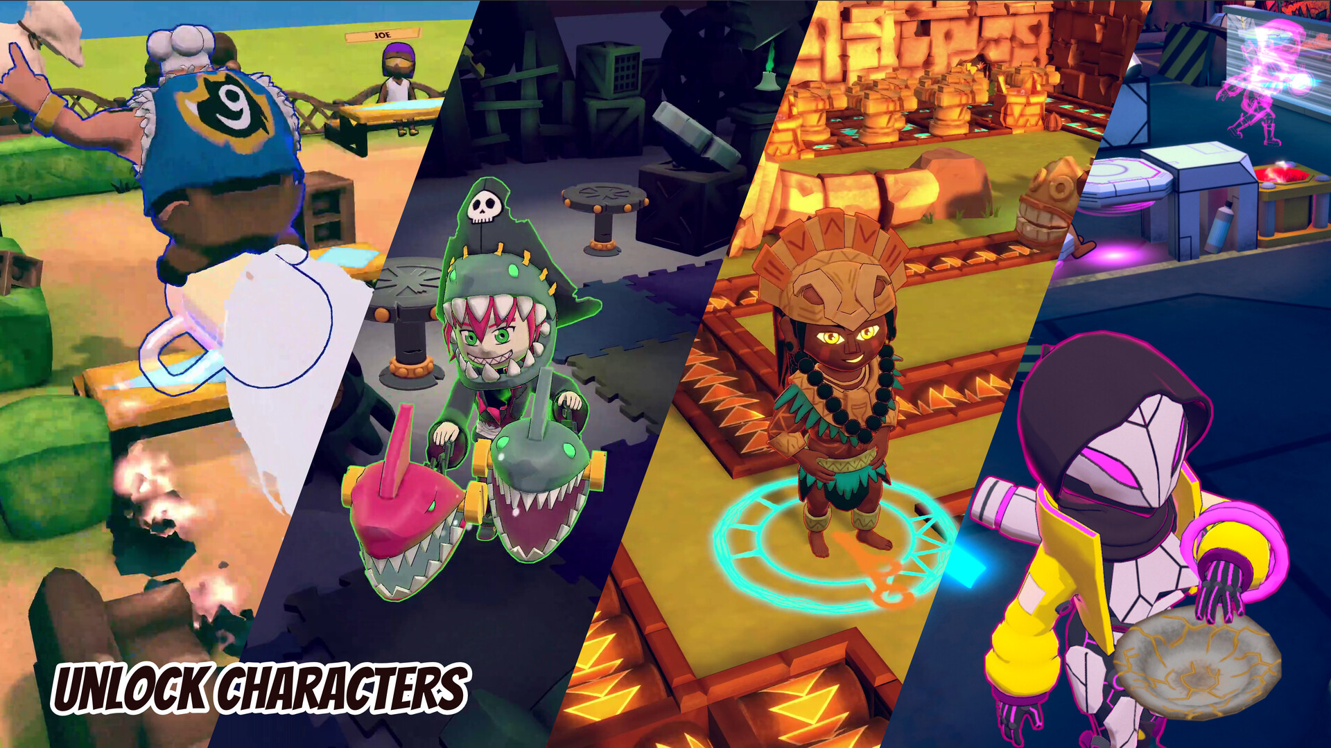 解锁厨师的完整名单,每个厨师都有自己的餐厅和独特的移动能力。从简单的冲刺到餐桌骑行 – 每个角色都有不同的游戏风格和学习曲线。
